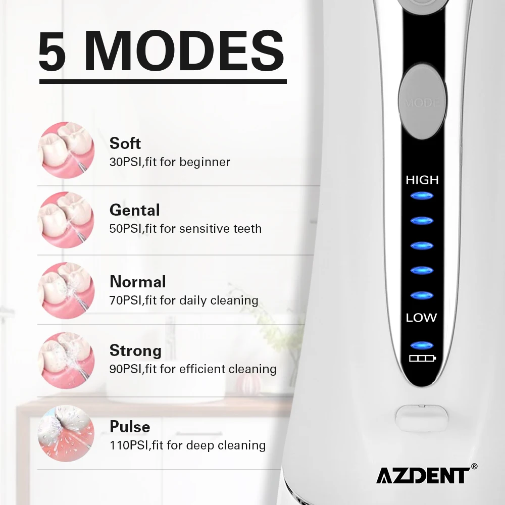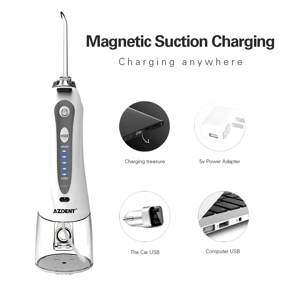 Buy Now AZDENT Portable Electric Oral Irrigator USB Charger Water Teeth Cleaner 240ml 5 Water Jet Tips 5 Modes Waterproof Adult Children